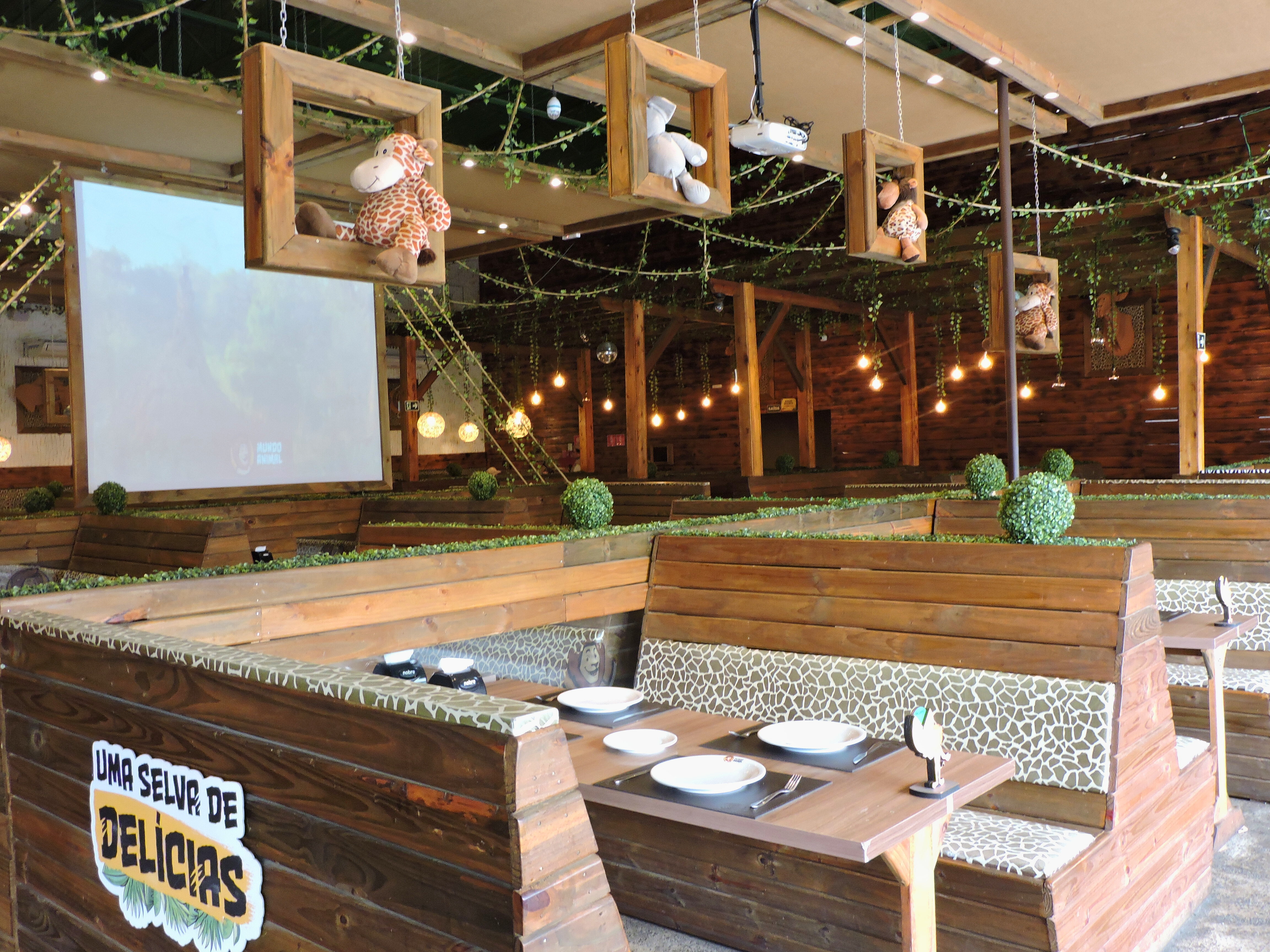 Logo na entrada, você sente a energia vibrante desse lugar: uma decoração que remete à selva, cheia de detalhes, texturas, cores e sons que despertam a imaginação enquanto o clima descontraído convida todos a relaxar e aproveitar. A casa conta com shows incríveis dos personagens, que dançam e cantam com as crianças, como um verdadeiro musical, por todo o restaurante.